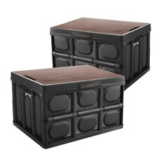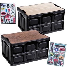7. 포캠 1+1 폴딩박스56L+우드상판+스티커(2p세트) 캠핑테이블 트렁크정리함 캠핑 리빙박스 수납박스, 2세트올블랙-56L(우드상판+스티커)