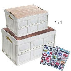 1. 포캠 폴딩박스56L+30L+우드상판+스티커(2p세트) 캠핑테이블 트렁크정리함 캠핑 리빙박스 수납박스, 크림색-56L+30L(우드상판+스티커)2세트