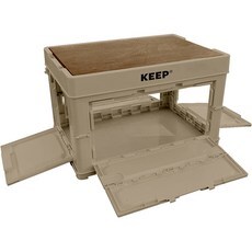 14. KEEP 캠핑 다용도 폴딩 박스 기본 상판 + 우드 상판, 카키